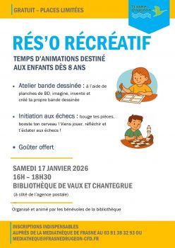 Vous êtes ici : Accueil > RÉS’O RÉCRÉATIF TEMPS D’ANIMATIONS DESTINÉ AUX ENFANTS DÉS 8 ANS